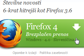 Najprej pojdite na tole spletno stran in kliknite na gumb Firefox 4 brezplačen prenos.