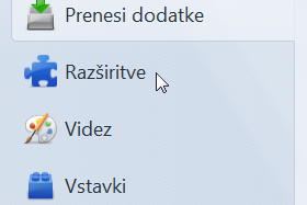 Na levi strani imate glavni meni. Ko pridete na Dodatke se vam uradno že odpre stran Prenesi dodatke - namesto, da bi hodili na uradno spletno stran Mozille Firefox, je sedaj tu bolj preprost način. Še ena zanimivost pa je - ni vam potrebno ponovno zagnati Firefoxa ob novem dodatku. V primeru težav se obrnite na forum. |