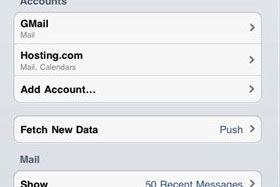 Če želimo vnesti svoje nastavitve za Gmail račun, kliknemo na Settings ter nato na levi strani izberemo Mail, Contacts, Calendars in kliknemo na Add Account.
