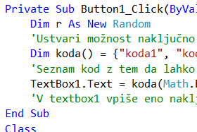 ![]() Zdaj dvokliknemo na gumb "Zgeneriraj" ter vpišemo naslednjo kodo: |