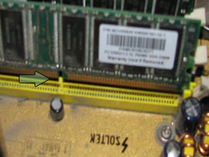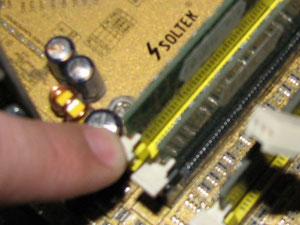 ![]() Podobno naredimo sedaj še na nasprotni strani RAM ploščice. |