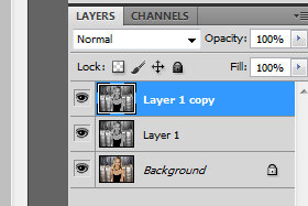 ![]() Pritisnite tipki Ctrl + J, da duplicirate dupliciran layer. |