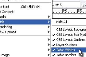 Table Widths nam prikazuje širino tabel in celic, ki pa večinoma naredijo še večjo zmedo, zato smo to izklopili. |
