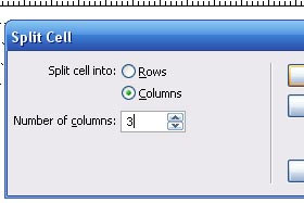 Določite Split cell into: Columns in spodaj določite Number of columns: 3. Potrdite še na OK. |