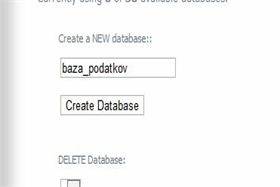 Pod Create a NEW database vpišite ime baze podatkov in kliknite na Create Database.