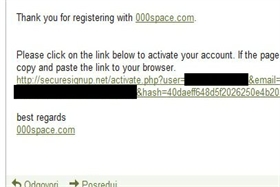 Pojdite sedaj v vaš program za elektronsko pošto in odprite e-mail z vašimi podatki, ki ste ga prejeli iz strani 000space.com.