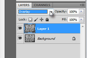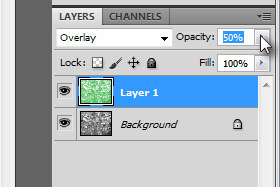 Nastavite layerju senčenje na Overlay in določite Opacity okoli 50% (glej sliko).
