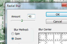 Kliknite zgoraj na Filter, Blur in izberite Radial Blur...