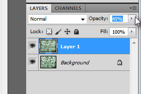 Določite layerju še nižjo Opacity vrednost (glej sliko).