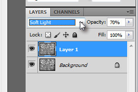 Nastavite layerju senčenje na Soft Light in določite Opacity okoli 70% (glej sliko).