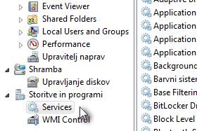 ![]() V kolikor izberemo Services, lahko vidimo vse sistemske servise, ki so nameščeni na našem računalniku. |