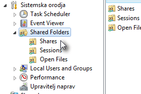 ![]() Pod Shared Folders lahko vidimo mape, do katerih je omogočen dostop iz drugih računalnikov. |
