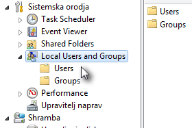![]() Preko Local Users an Groups lahko upravljamo z računi na našem računalniku. |