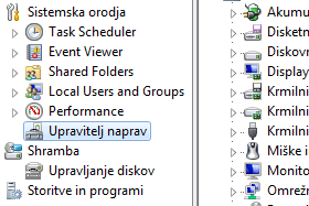 ![]() Pod Upraviteljem naprav najdem vse naprave, ki so nameščene na našem računalniku. |