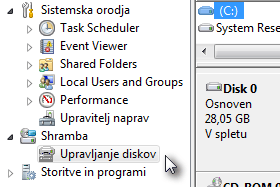 ![]() Kot že pove ime samo, Upravljanje diskov omogoča pregled vseh diskov in particij na našem računalniku. |