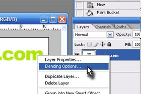 V polju z layerji kliknite z desnim miškinim gumbom na tekstovni layer, ki ste ga ravnokar ustvarili in izberite Blending Options...