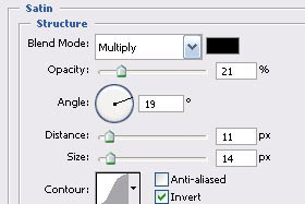Opacity določite 21 %, Distance 11 px in Size 14 px. |