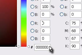 V novem oknu za določanje barve v polje # vpišite 000000.