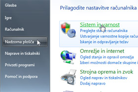 Odprite Nadzorno ploščo in izberite Sistem in varnost.