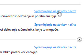V tem oknu vidite več načrtov porabe energije. Izberite tistega, ki ga želite spremeniti oz. ga uporabljate in kliknite na Spreminjanje nastavitev načrta.