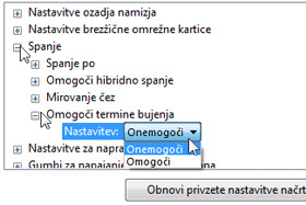 V naslednjem oknu poiščite možnost Spanje in kliknite nanjo, da se odprejo druge možnosti. Sedaj odprite Omogoči termine bujenja in izberite Nastavitev: Onemogoči. Spremembe potrdite z gumbom V redu.