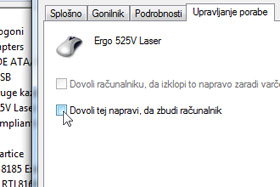 V novem oknu odprite zavihek Upravljanje porabe in odstranite kljukico pri možnosti Dovoli tej napravi, da zbudi računalnik. Potrdite z gumbom V redu.