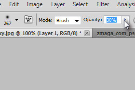 Zgoraj v orodni vrstici določite Opacity na okoli 30% (glej sliko).