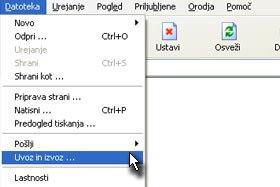 Kliknite na Datoteka in izberite Uvoz in izvoz ...