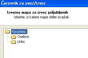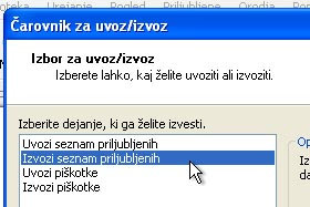 Ko vas vpraša, katero dejanje želite izvesti, izberite Izvozi seznam priljubljenih in potrdite na gumb Naprej.