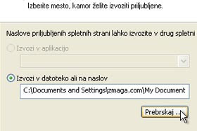 Predlagam pa vam, da si to izbvoženo datoteko pošljete na vaš spletni e-poštni naslov (gmail, hotmail, email.si...) in si tako dodatno shranite priljubljene. |