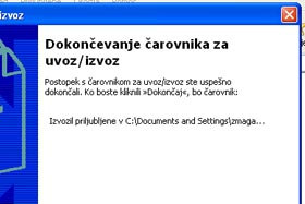 Odpre se vam okno Čarovnik za uvoz/izvoz.
