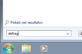 Kliknemo gumb Start in iskalno polje vpišemo defrag.