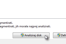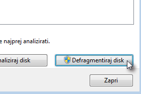 Sedaj kliknemo na gumb Defragmentiraj disk, s katerim bomo pričeli s preurejanjem lokacij datotek na disku.