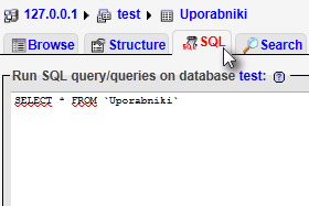 ![]() Za prikaz te lekcije sem uporabil podatkovno bazo MySql in orodje phpMyAdmin. |