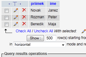 ![]() V kolikor želimo pridobiti vsa polja iz tabela, pa lahko uporabimo znak *, ki predstavlja vsa polja. |
