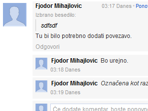 ![]() Znotraj okna se nam sedaj odpre okno, v katerem lahko vidimo naše pretekle komentarje.