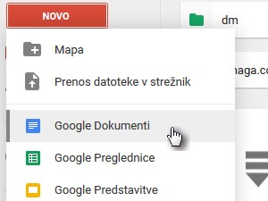 ![]() Kliknemo na gumb Ustvari nov in izberemo možnost Dokument. |