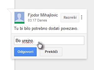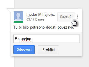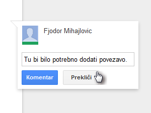 ![]() V kolikor bo sedaj druga oseba urejala ta dokument, bo videla naš komentar. |