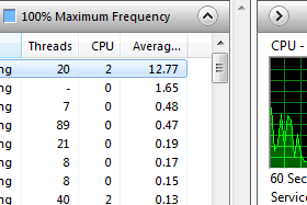 ![]() V kolikor sedaj izberemo zavihek CPU, vidimo trenutno obremenjenost procesorja iz strani posameznih procesov. |