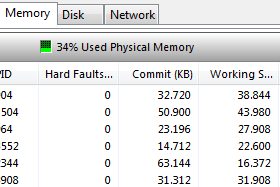 ![]() Na zavihku Memory najdemo informacijo, koliko pomnilnika uporablja posamezni proces. |
