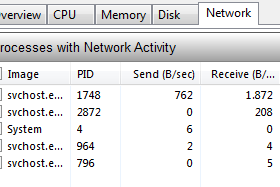 ![]() V zavihku Network najdemo obremenjenost naše mrežne kartice. |