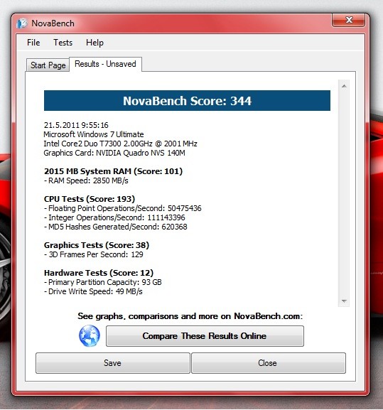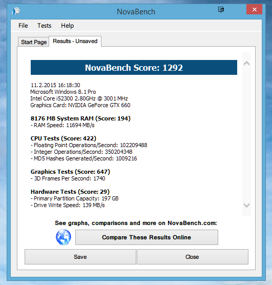 Brezplačni program NovaBench najdemo na spletni strani http://novabench.com.