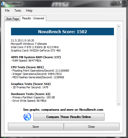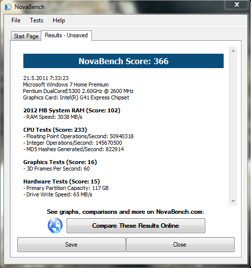 ![]() Ker pa sama številka ne pomeni kaj dosti, pa lahko svoje rezultate primerjamo z rezultati, ki so jih dosegli drugi računalniki. |