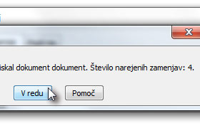 ![]() In Word vam bo zamenjal vse iskane besede in vam na koncu tudi odprl okno s sporočilom, koliko besed je bilo zamenjanih. |