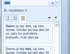 ![]() Prikažejo se nove funkcije, kjer označite Išči samo cele besede. |