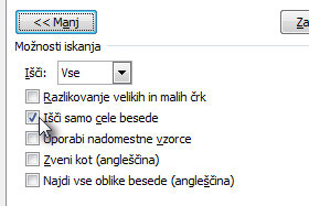 ![]() Sedaj bomo nastavili še, da bo Word zamenjal samo cele besede. |