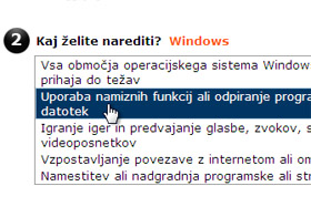 V 2. koraku izberite kje točno v tem programu prihaja do težav oz. do kakšne vrste težav prihaja.