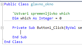 'Ustvari spremenljivko which Dim which As Integer = 0 Poglejte na sliko, kam vpisati. |