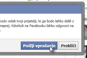 Pojavi se opozorilno okno, kjer samo še enkrat potrdite s klikom na gumb Pošlji vprašanje.