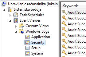 ![]() Seveda pa moramo dogodke dostopa do datotek znati tudi pregledati. |